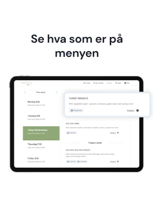 Hva skal du ha til lunsj? Last ned appen og utforsk din bedrifts lunsjordning! Vi har gjort det enkelt for deg å velge hva du, som ansatt, skal ha og spise til lunsj, slik at kjøkkenet kan fokusere på å forberede lunsjen din.