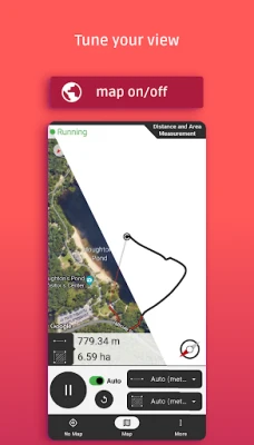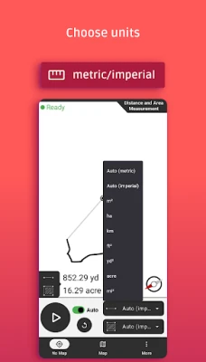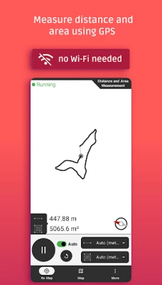 Turn this application on and walk or drive around a region to measure its area. The path's length is measured as well.