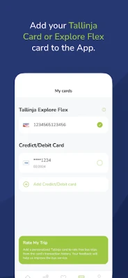 My Cards: In this section, you can add, manage, and keep track of several payment methods. Additionally, you can connect your personalised Tallinja Card or Flex Card with the Tallinja App. This will enable you to view your transaction history, pay for any Tallinja On Demand bookings, and check for any new travel offers.